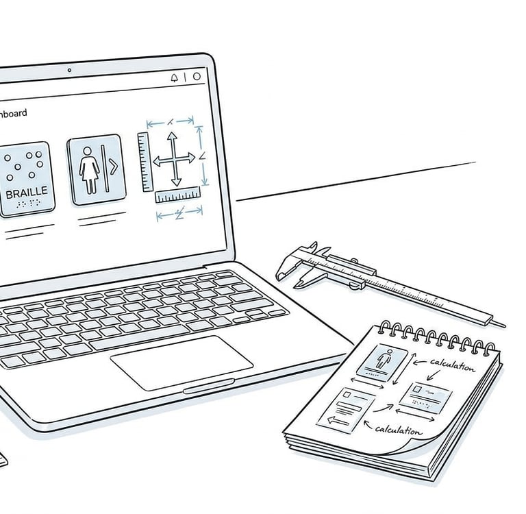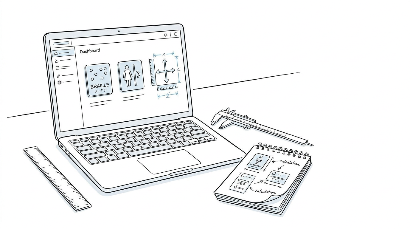 Ensure your signage is compliant with Section 703 from the 2010 ADA Standards requirements with our comprehensive toolkit. Professional-grade calculators for designers, architects, and facility managers.
